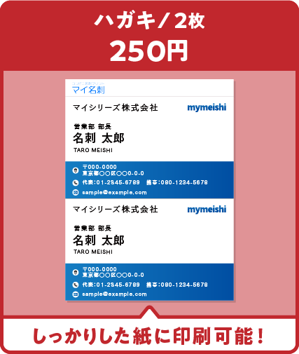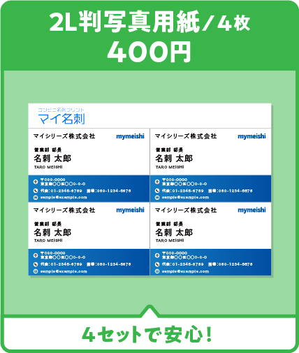 写真用紙に名刺をプリントされるため、裏面には印刷されません。