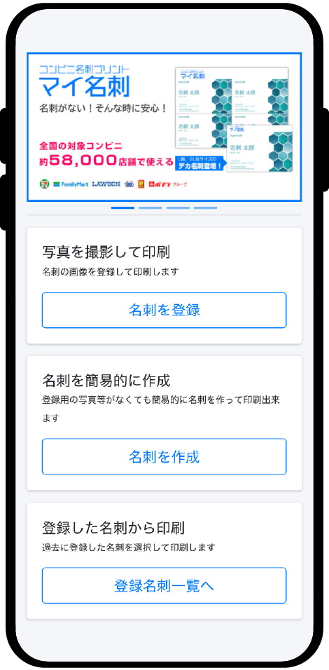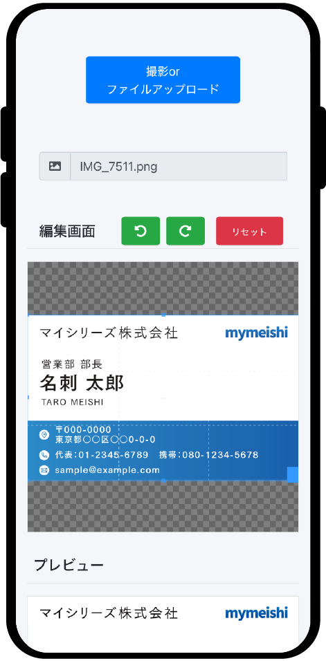 ❶まず名刺写真を撮るor画像をアップ